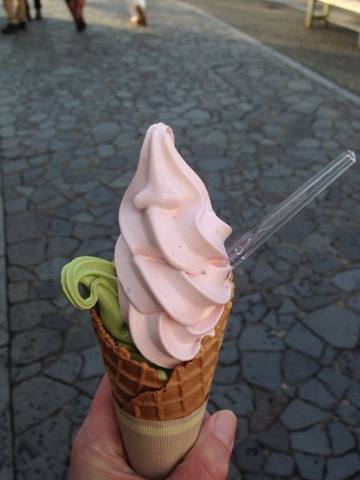 So we wandered around the makets for a while, grabbed some strawberries and pineapple on sticks - pretty amazing, especially as fruit seems to be a less common part of a diet here, although perhaps I've been looking in the wrong places?? - and I selected my vending machine offering of the day: Hot matcha tea to warm a freezing cold hand.